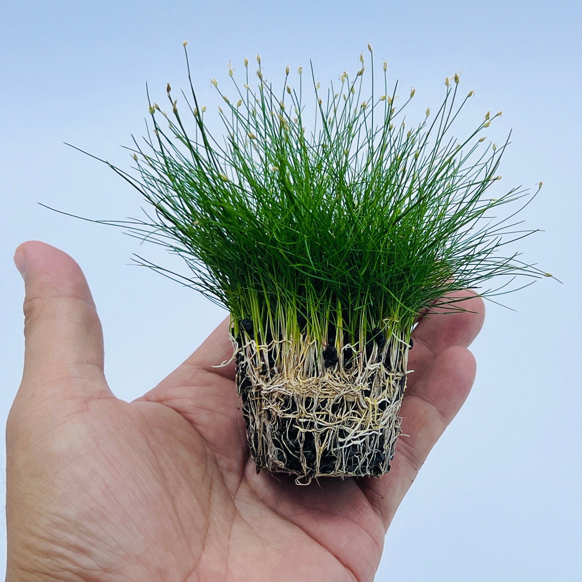 葉は細長くて柔らかく、鮮やかな緑色をしています。成長すると、地面や岩などに広がるように密集した群生を形成し、美しいグリーンカーペットを作り出します。その姿はとても魅力的で、水槽内での景観作りによく利用されます。