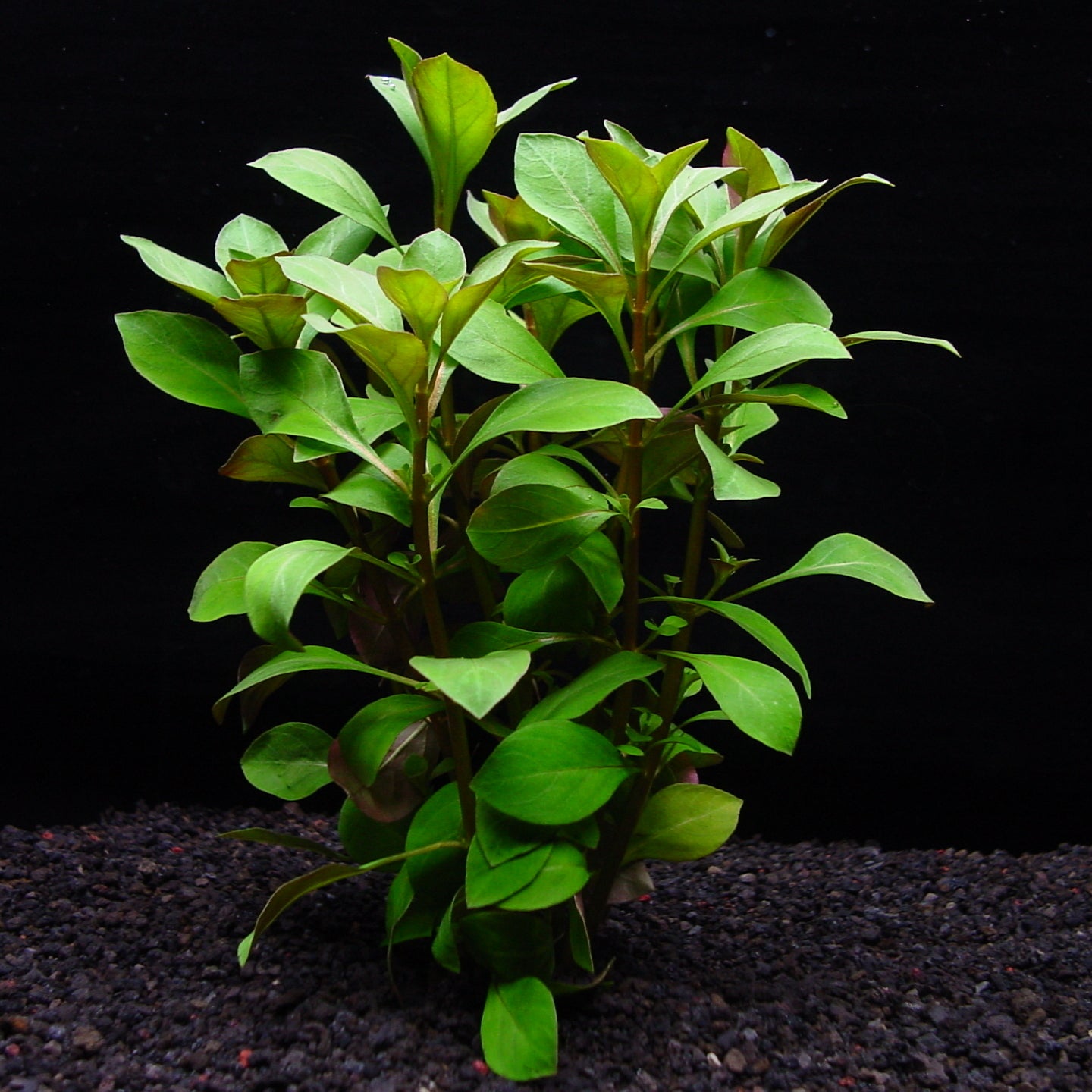 強めの光で育てると、葉が赤みを帯び美しい。丈夫で育てやすいポピュラーな水草。