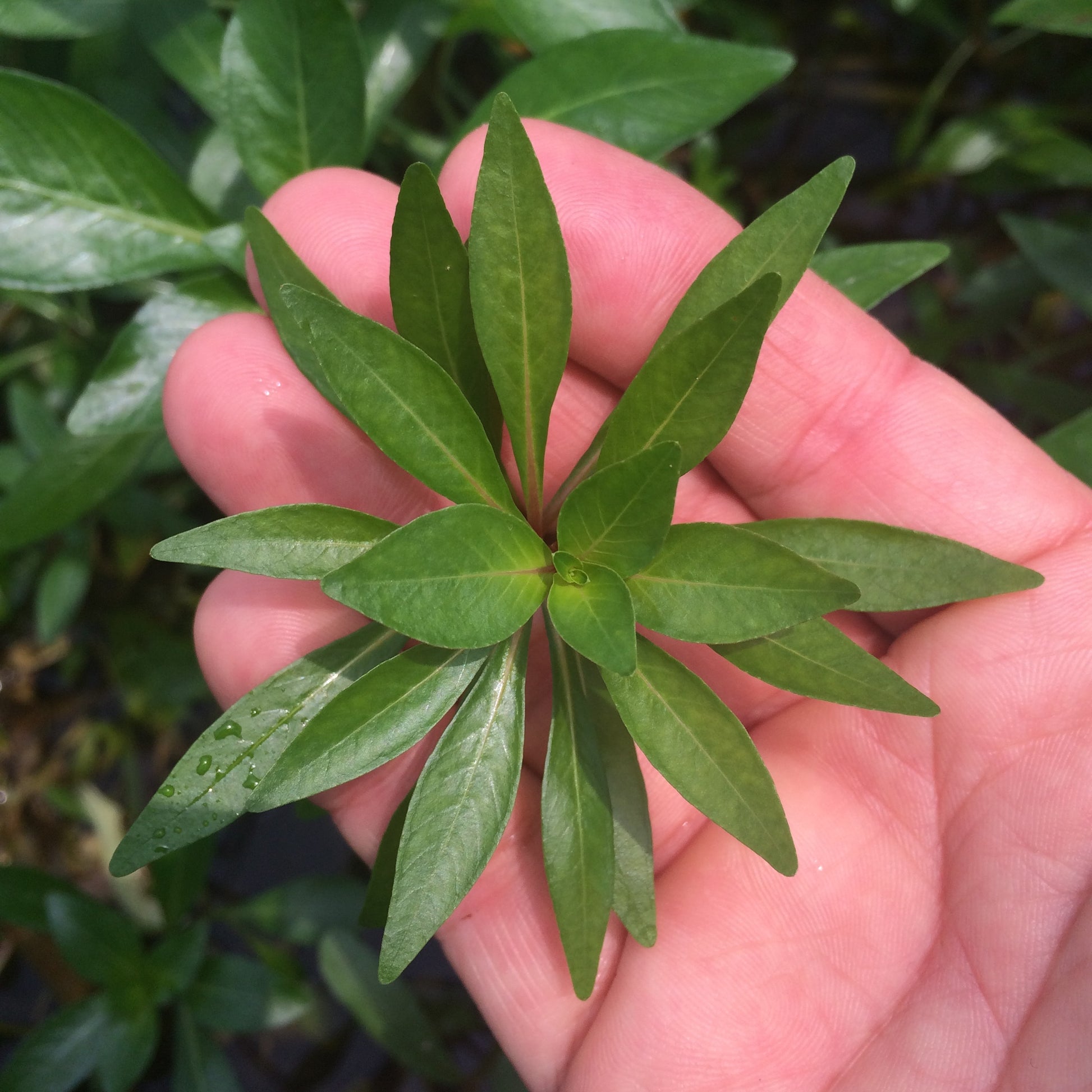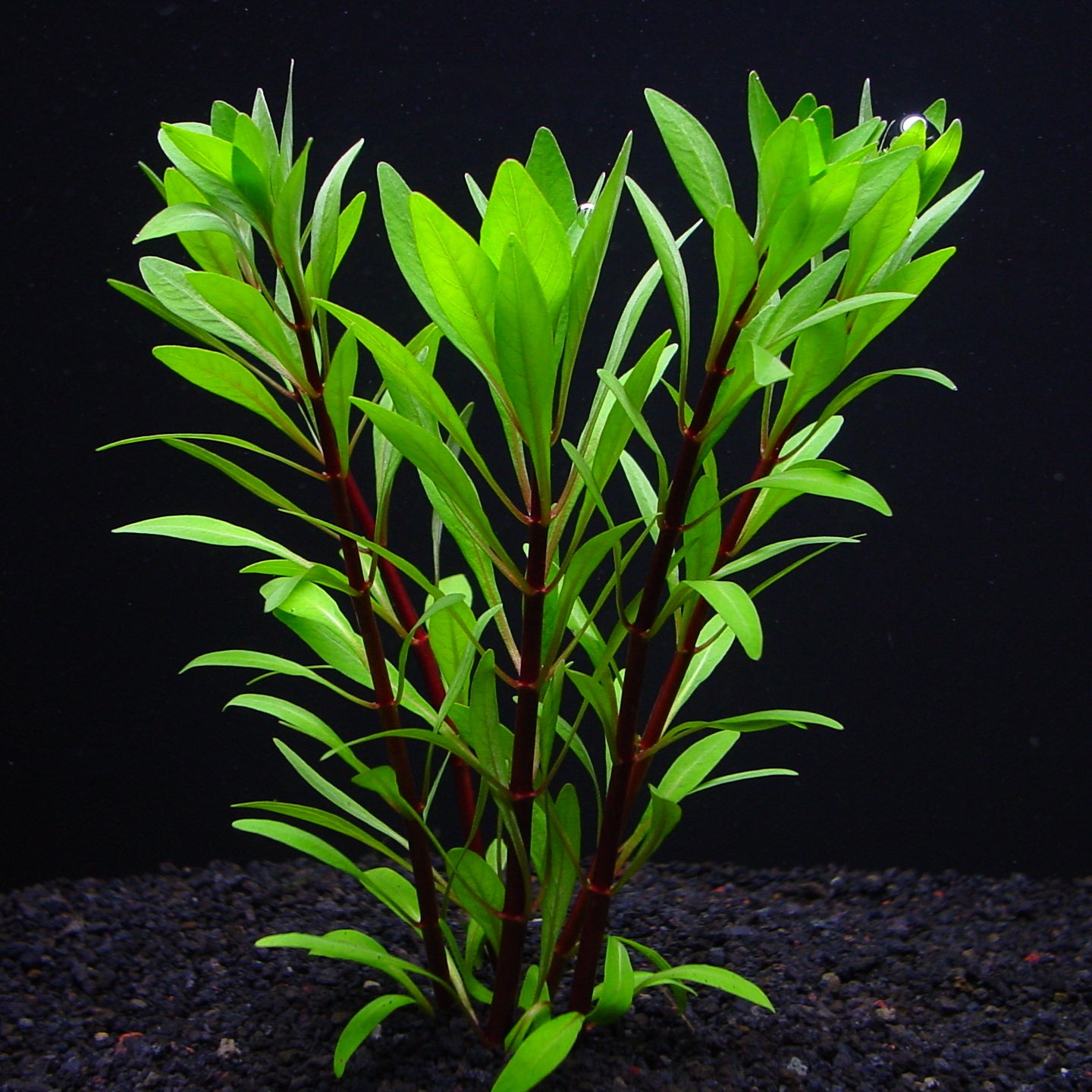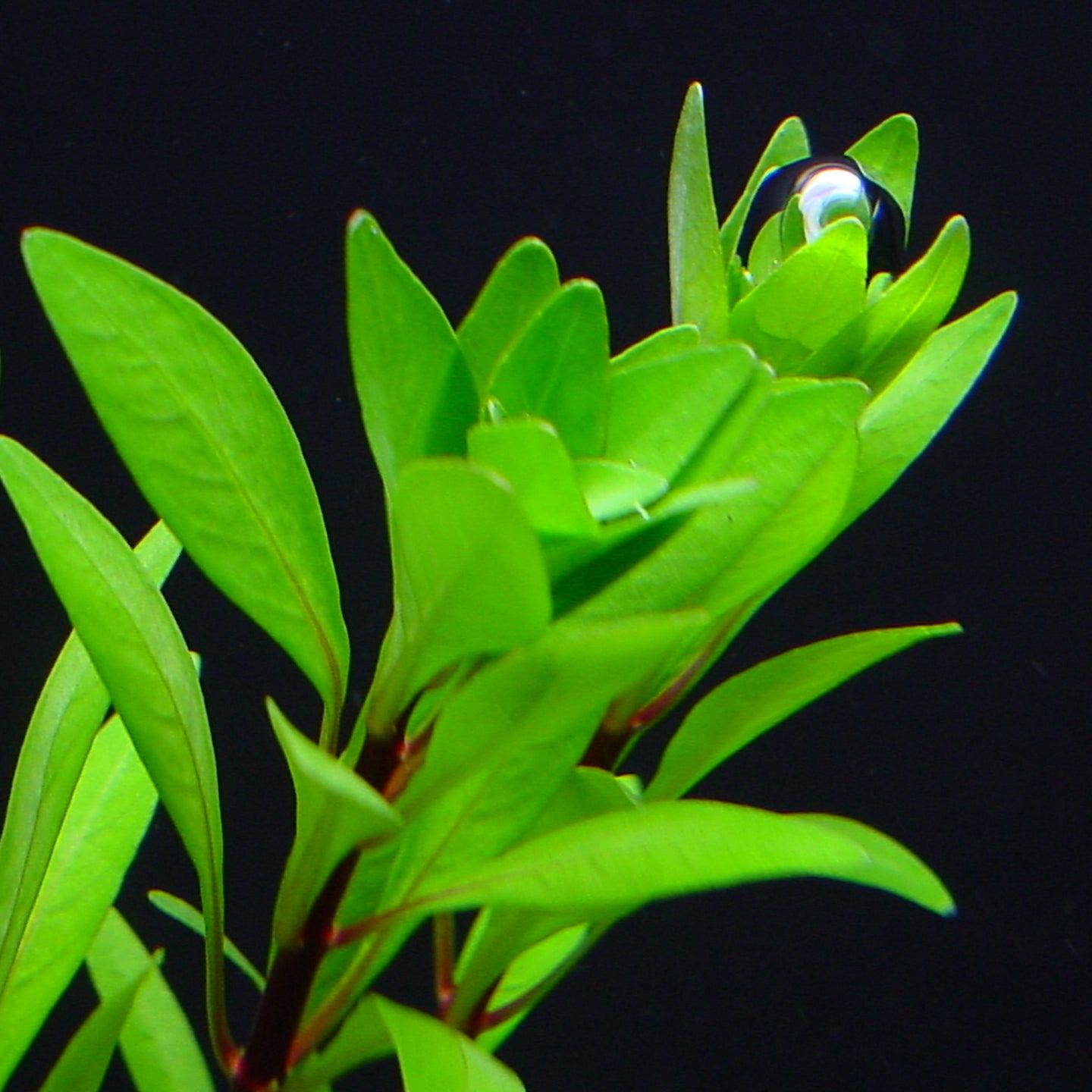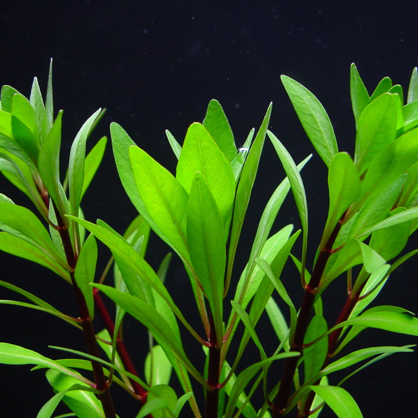 細かく密に輪生する細い葉がとても美しい、1本でも十分存在感のある水草。水上葉からでも水中葉に変わりやすく、育てやすい。
