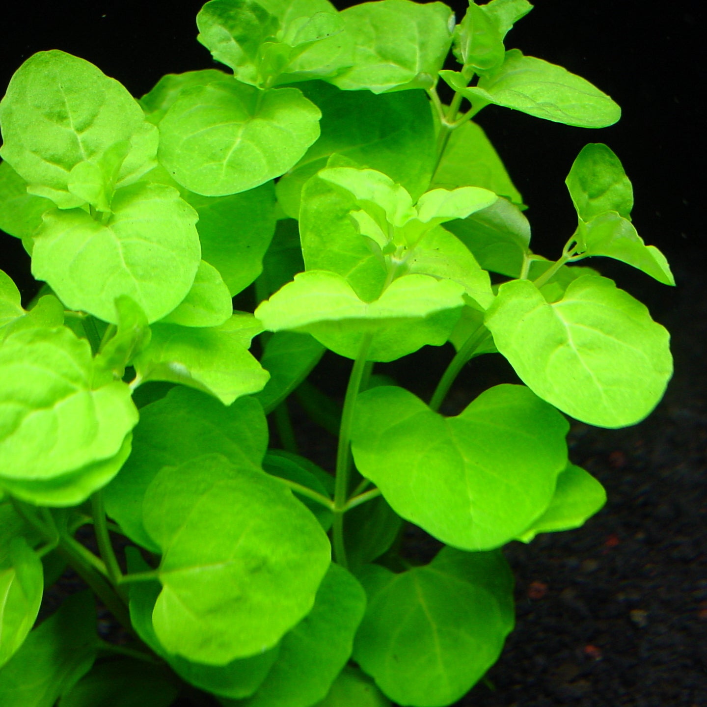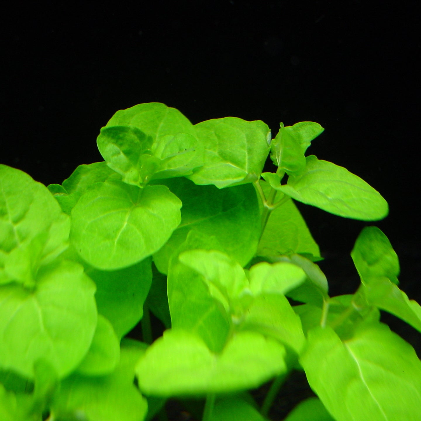ポピュラーな水草。水上葉でも育てやすく、葉や茎からはミント臭がし、白くてかわいらしい花をつけるのでアクアテラリュームに使用しても面白い。
