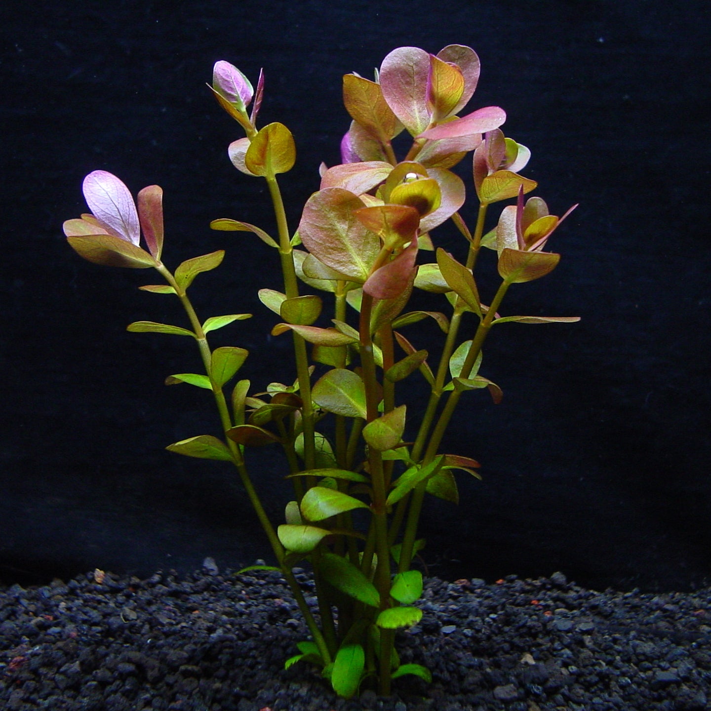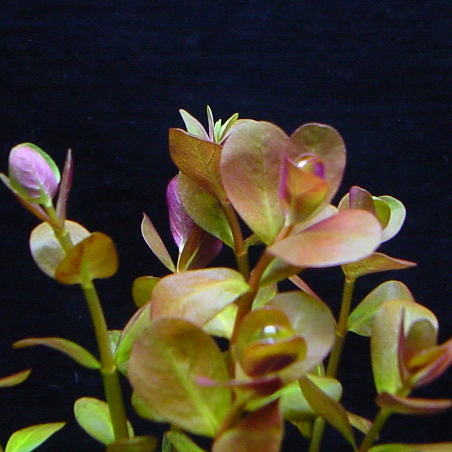 ロタラ インディカに良く似る。本種の方が葉が少し丸みを帯び、ブラウンに近い赤色。やはり生長が早くこまめなトリミングが必要。