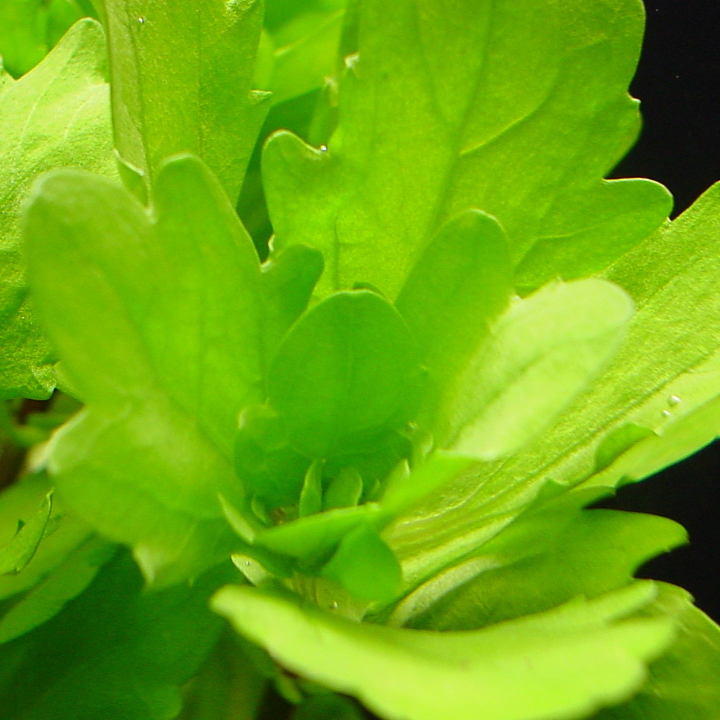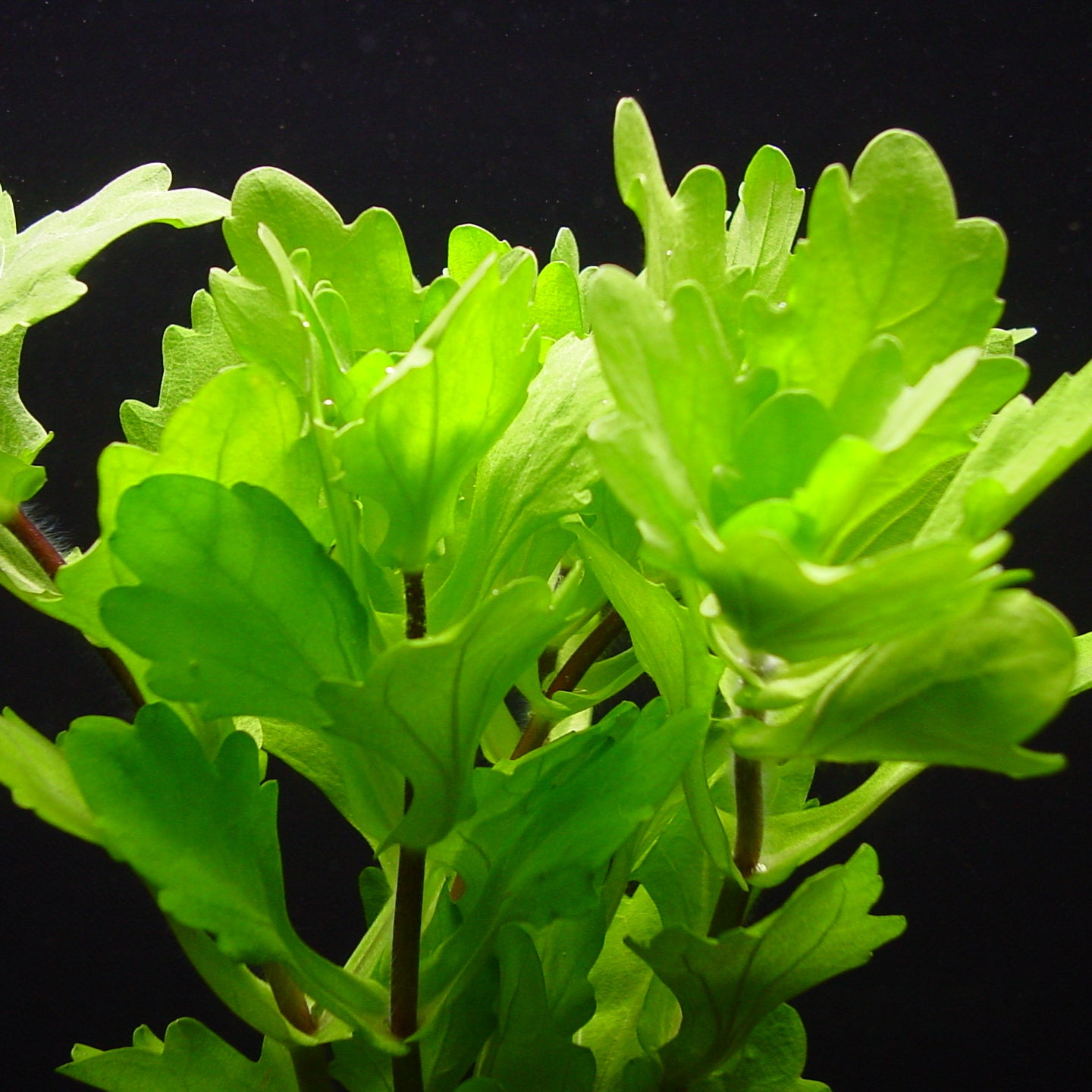 キクの葉に似ている、丈夫でポピュラーな水草。生長が早いので、後景に茂みを作るのに適している。