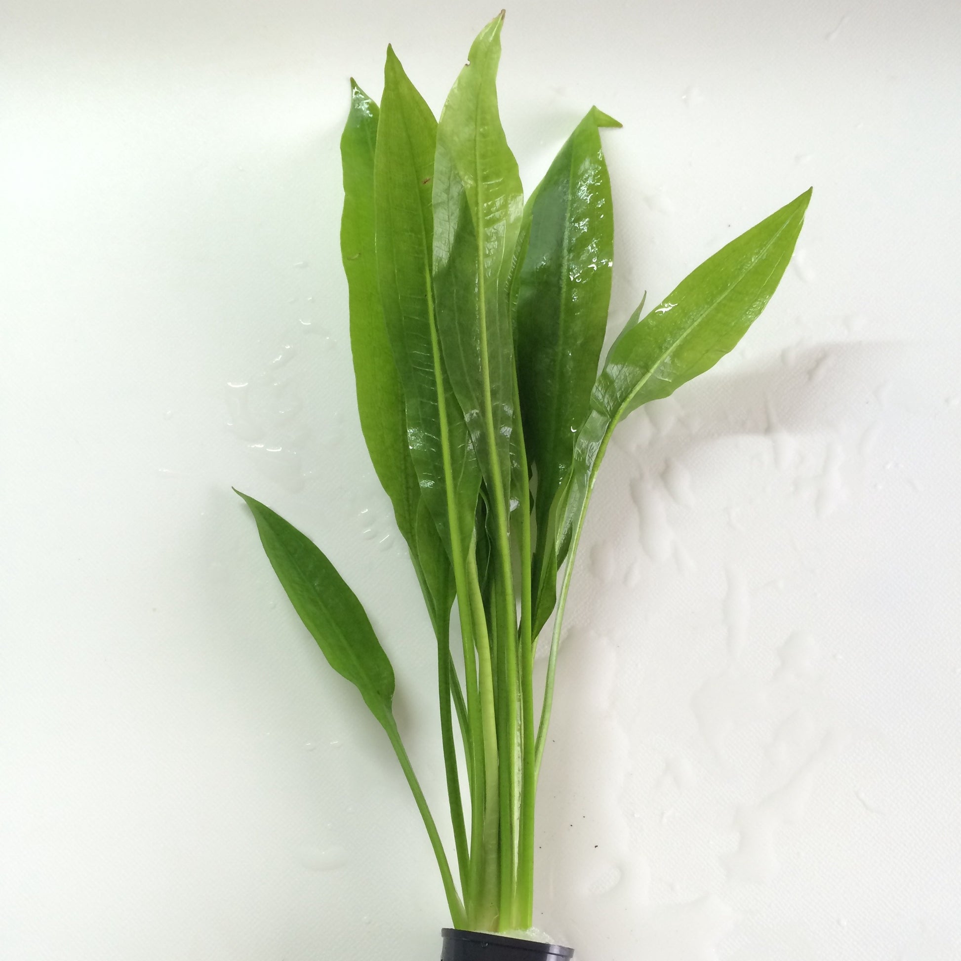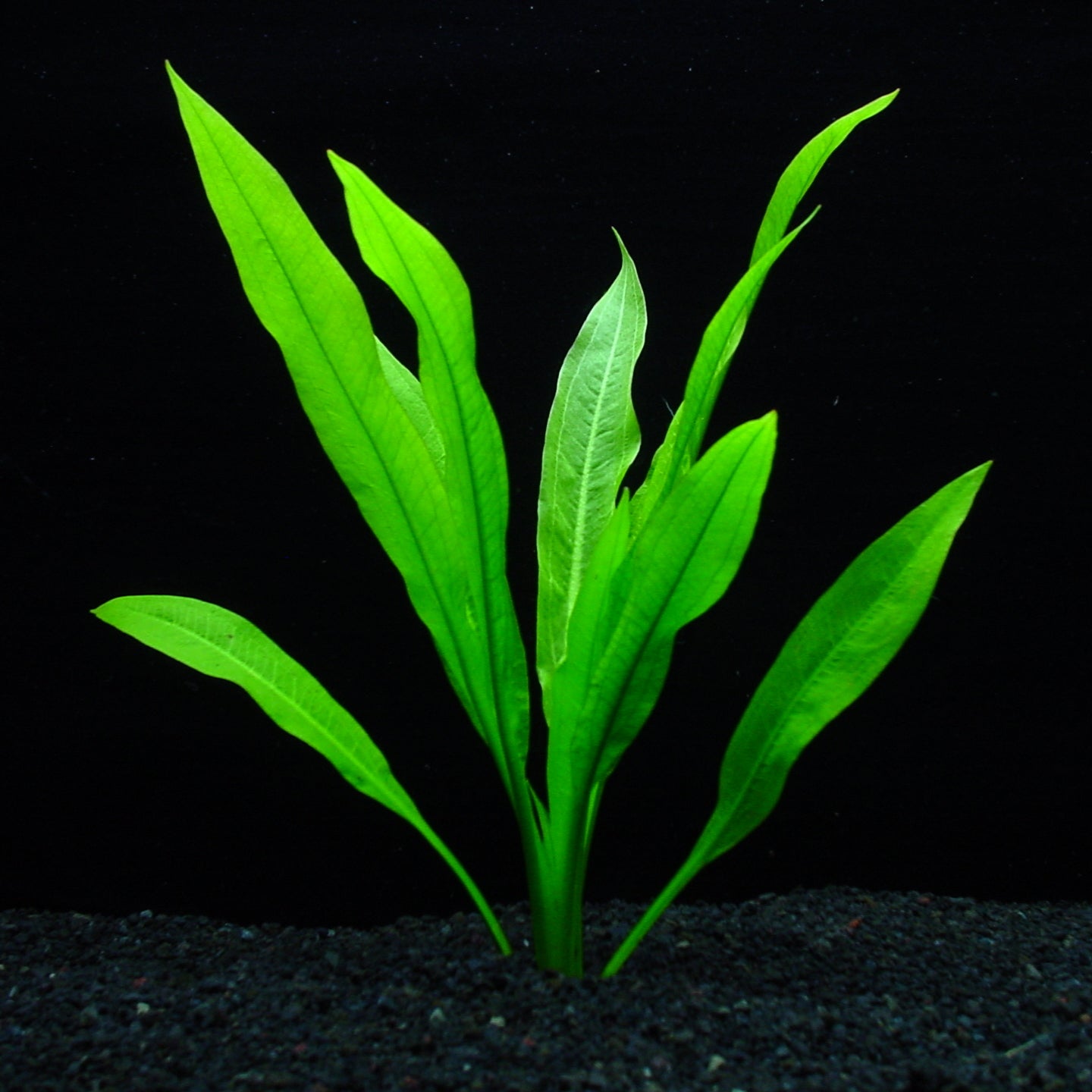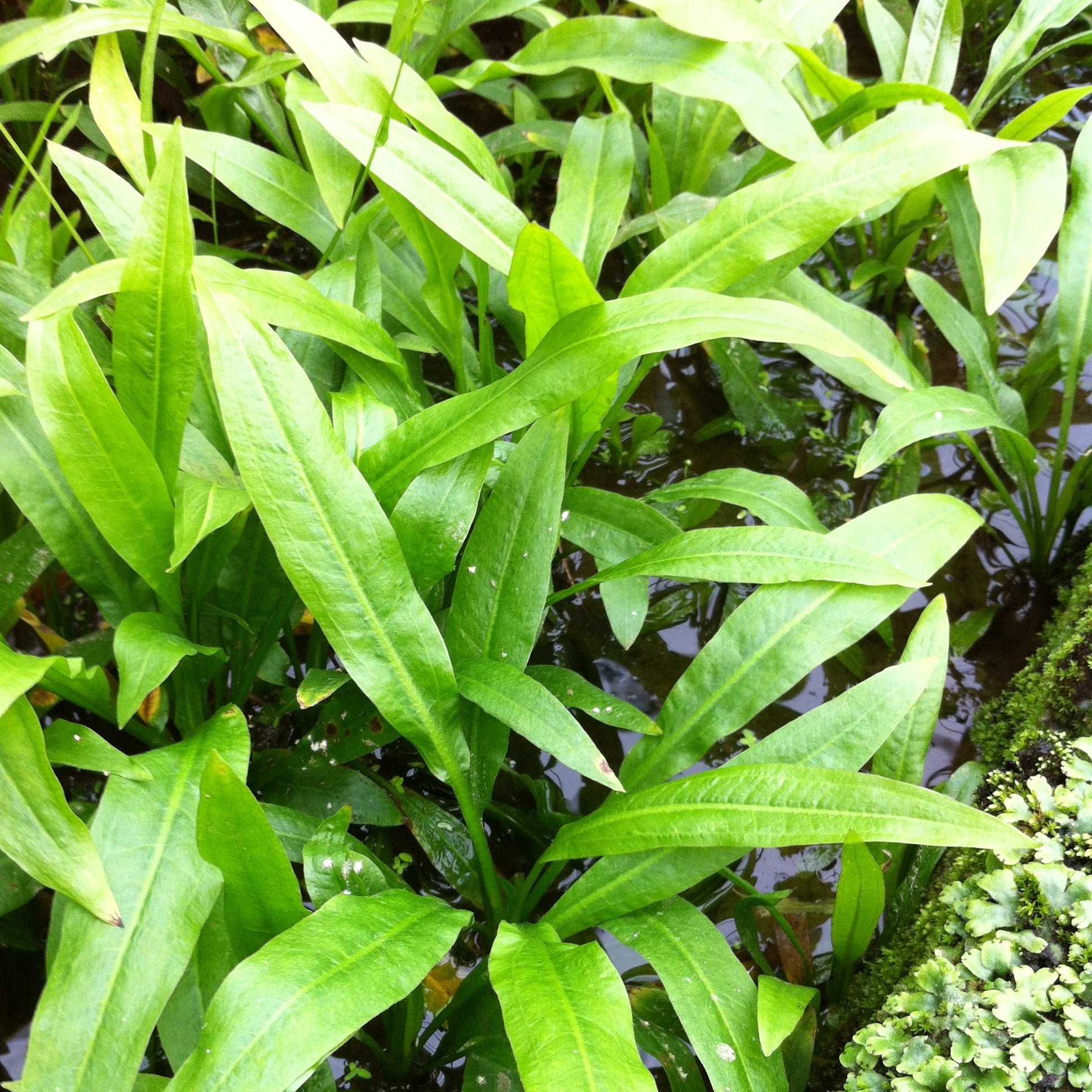 ポピュラーなエキノドルス。低床に肥料を与え環境に適すると、葉を数多く出し大型になるので迫力あるセンタープラントとして使える。写真は1本をまとめて植えたときの状態です。